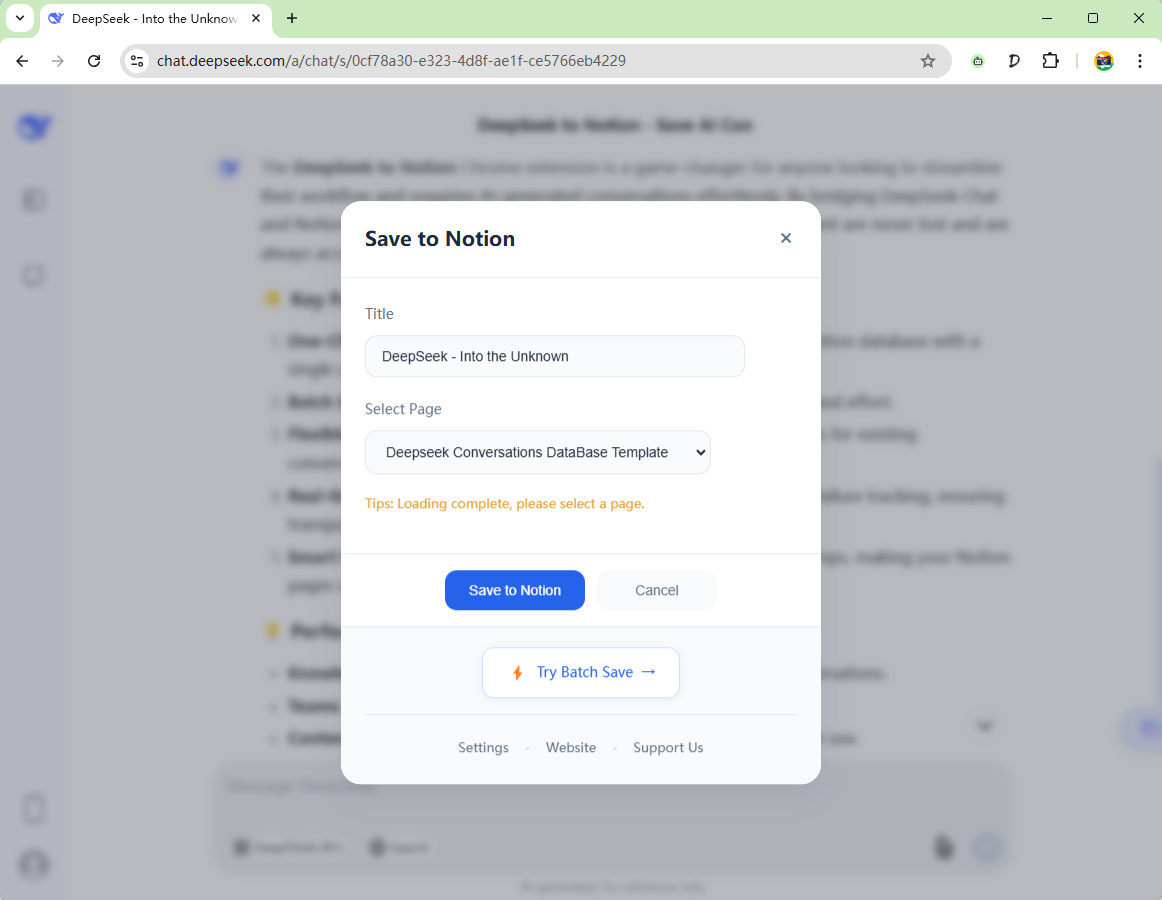 I never knew managing AI conversations could be so simple. DeepSeek to Notion is an awesome tool that I'll be using again.